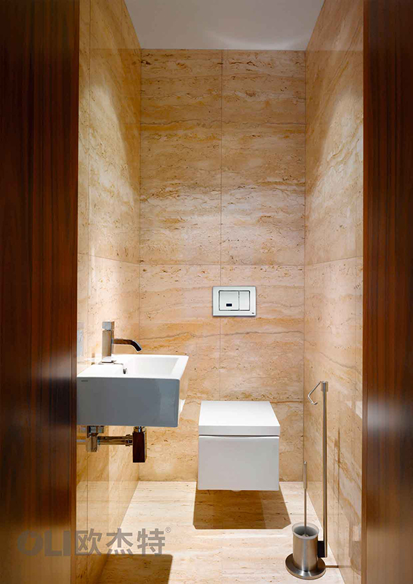 传统的落地式马桶和水箱基本都是一体的,不仅很占空间,而且也不美观。入墙式马桶和隐蔽式水箱就不一样,它们最早流行于欧美国家,水箱安装在墙体内部的同时马桶悬挂在墙体之上可以更好的优化卫浴空间,可以节约出至少百分之40的空间效果,尤其像欧杰特隐蔽式水箱最薄仅为74mm,可能是优化卫浴空间的最佳选择方案。
