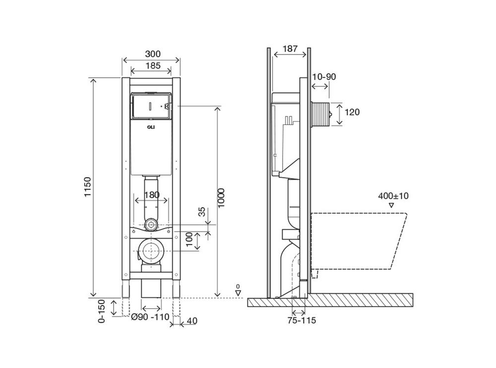 适用于所有壁挂式马桶,固定长度 180mm